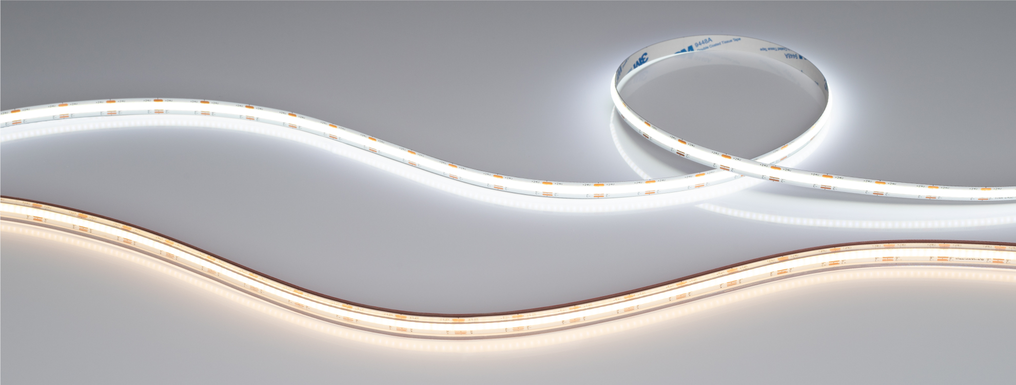 Ленты линейки COB — идеальное решение для создания равномерной линии света даже без применения рассеивающих экранов. COB-ленты с MIX-свечением подойдут для создания как основного освещения, так и декоративной подсветки.