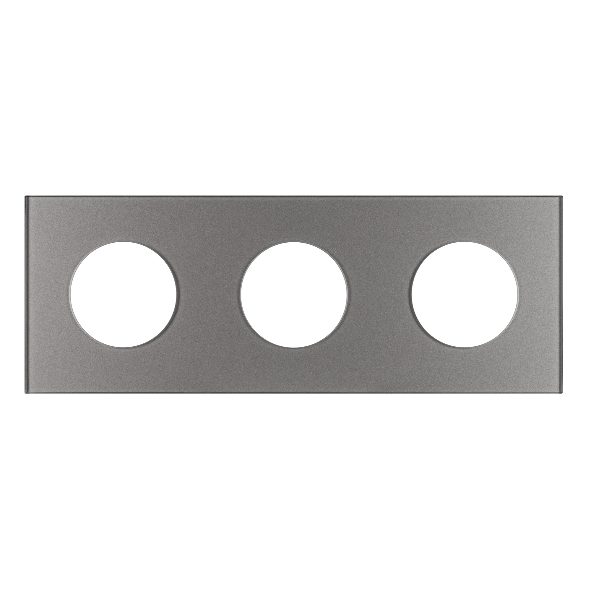 Рамка стеклянная на 3 поста, под встраиваемый механизм. Вырез под функциональную часть круг. Цвет - серый. Ориентации монтажа - горизонтальная. Габаритные размеры: длина 224 мм, ширина 82 мм, высота 10 мм. Гарантийный срок 12 мес. Рамка совместима только с механизмами арт. 043741/043739/043740