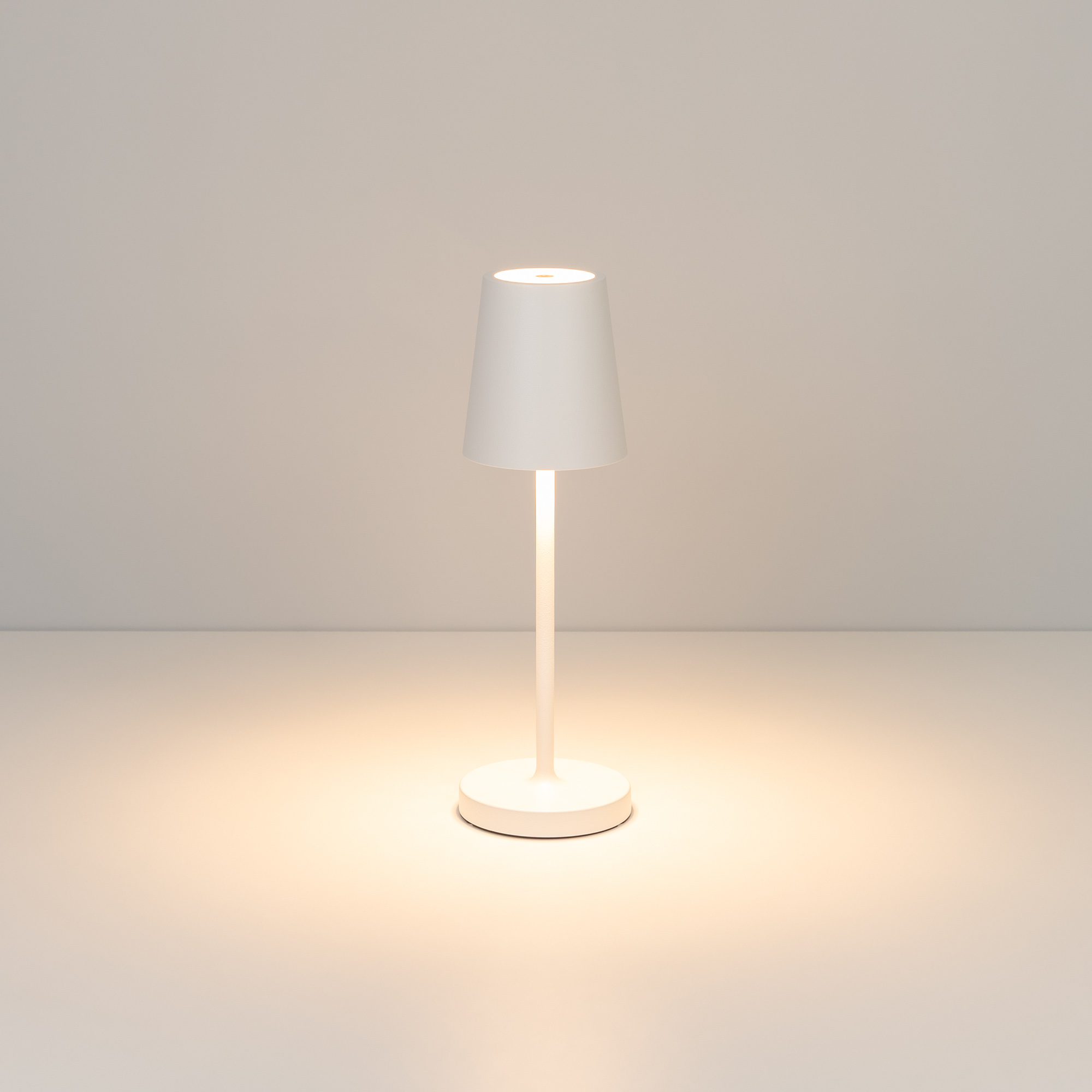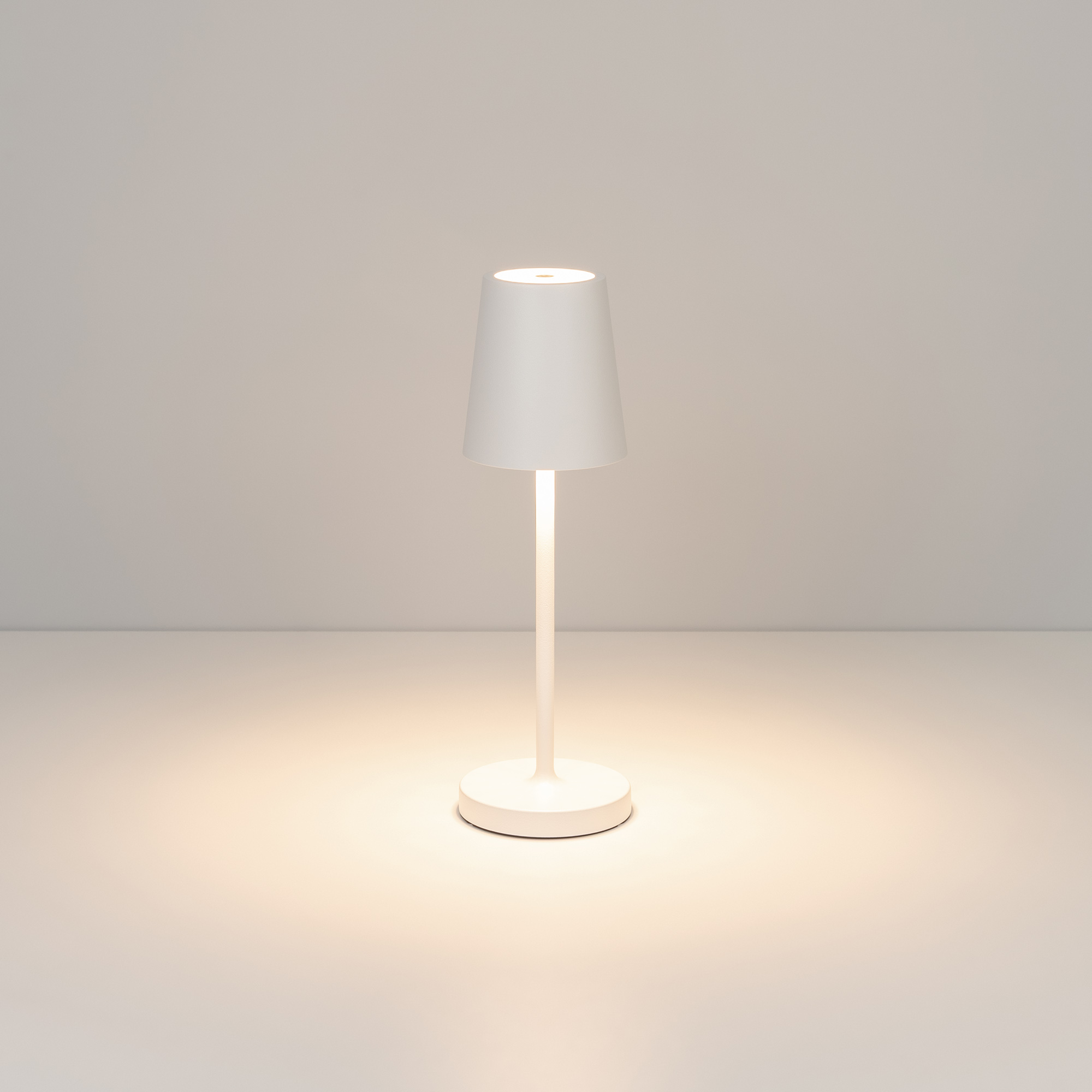 Настольный светодиодный светильник DAISY со встроенным аккумулятором 1.5 Вт. Светильник с регулируемым цветом свечения (2200-2700-3000 К) и световым потоком 110-130 лм станет отличным решением для локальной подсветки. Благодаря степени защиты IP54 светильник можно использовать как в помещениях, так и под открытым небом. Встроенная Li-ion аккумуляторная батарея емкостью 1500 мАч способна обеспечить до 90 часов автономной работы светильника. Последовательное нажатие сенсорной кнопки позволяет включить/выключить светильник и выставить нужный уровень яркости и цвета свечения. Зарядка осуществляется через герметичный USB-порт. Зарядный кабель входит в стандартный комплект поставки.