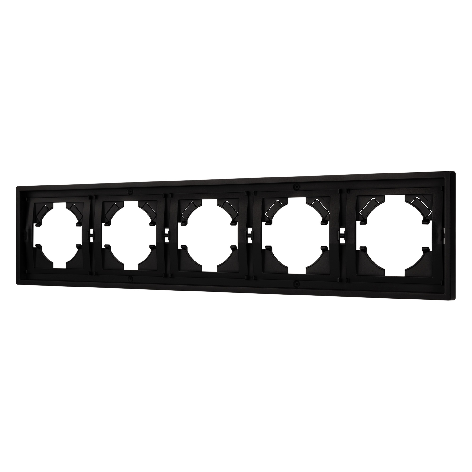 Рамка пластиковая на 5 постов, под встраиваемый механизм. Цвет - черный. Среднего уровня герметичности IP20. Ориентация монтажа горизонтальная. Габаритные размеры: длина 364 мм, ширина 80 мм, высота 9 мм. Гарантийный срок 12 мес.