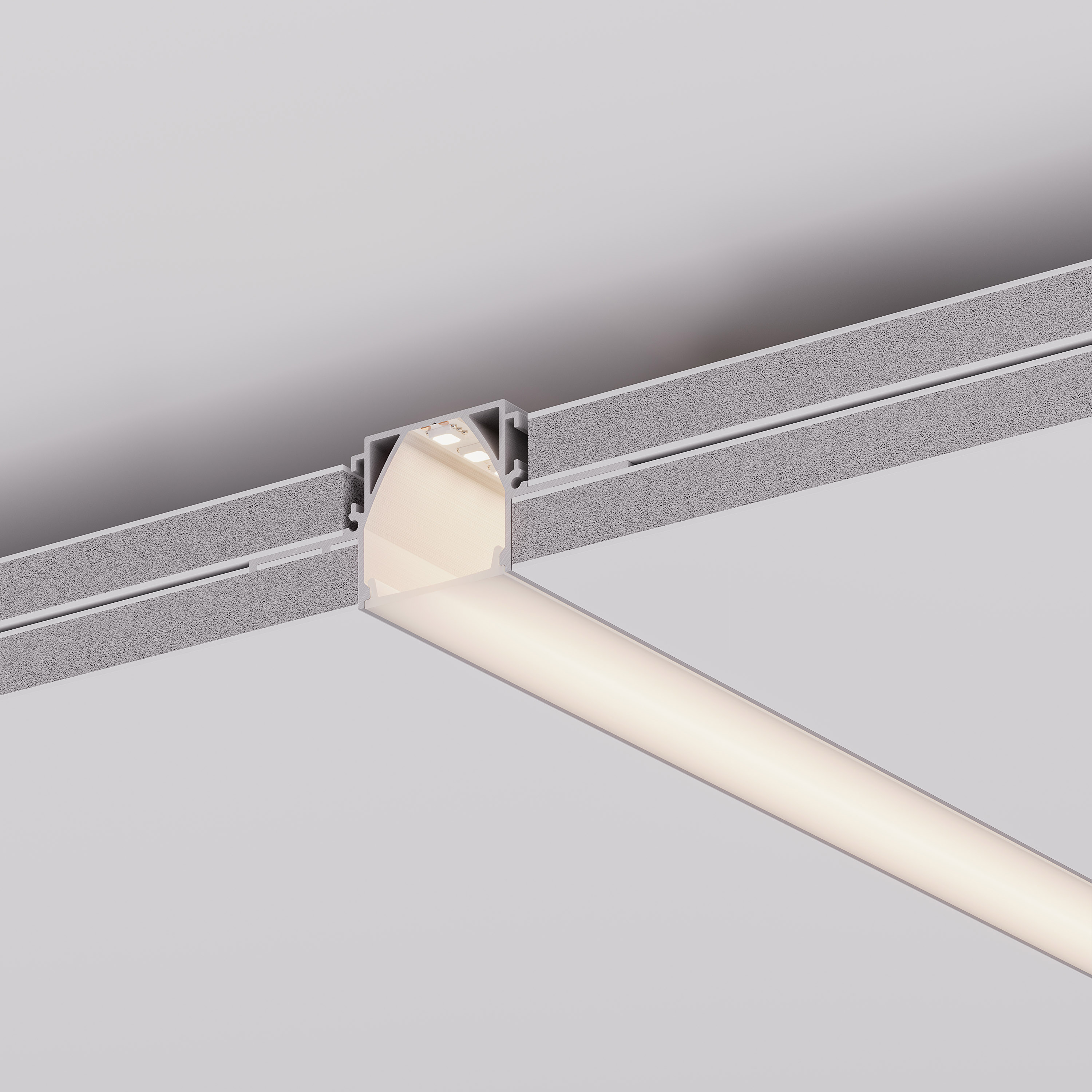 Встраиваемый профиль из анодированного алюминия со скрытым фланцем для установки в гипсокартон толщиной 12,5 мм для основной и контурной подсветки помещений. Габаритные размеры профиля составляют 2000 мм в длину, 87,5 мм в ширину и 32,8 мм в высоту. Площадка для установки светодиодных лент позволяет использовать ленту шириной до 11 мм и мощностью до 35,7 Вт/м. Это обеспечивает гибкость в выборе светодиодных лент и создает потрясающие световые решения.