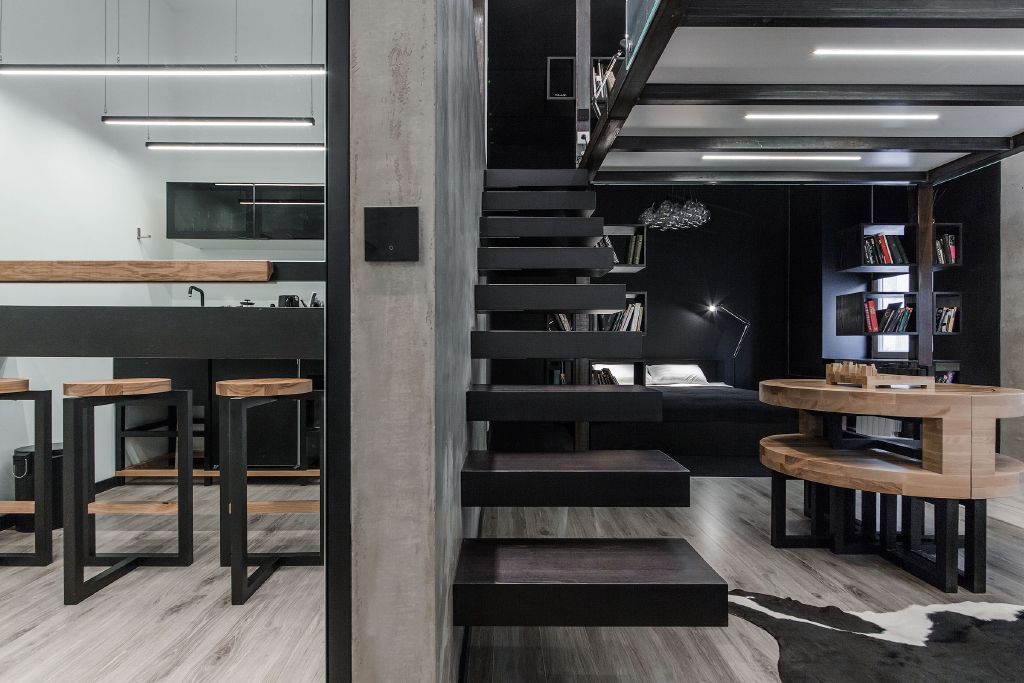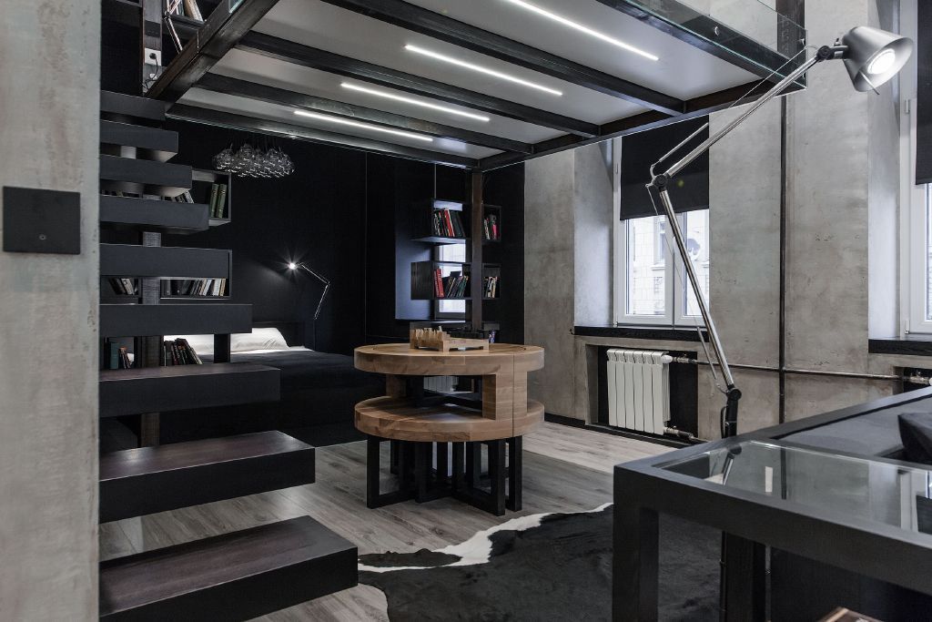 Светодиодное освещение в квартире-студии, выполненной в стиле "Баухауз".
