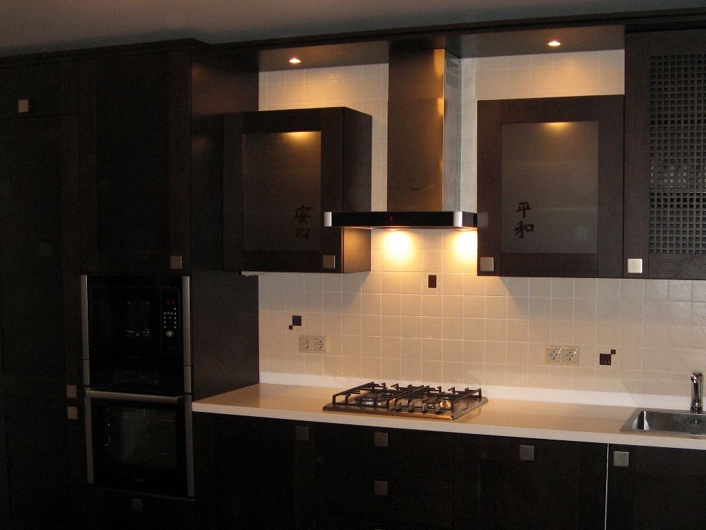 Итак, теперь, пожалуй, вернемся и к подсветке рабочей поверхности. Это действительно один из ключевых моментов организации светового пространства кухни, т.к. если в помещении присутствует только основное освещение, то зачастую хозяйка, готовя пищу, поворачивается к нему спиной, тем самым закрывая от света рабочую поверхность. Такой ситуации, конечно, можно избежать, поставив рабочий стол в центр кухни, но, согласитесь, все еще не часто размеры кухни позволяют это сделать. Выход – дополнительно освещать разделочные столы.